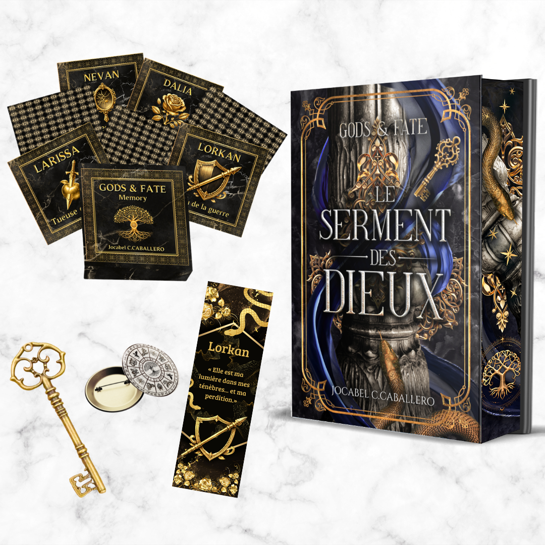 Cette édition limitée renferme un magnifique collector jaspé du roman, accompagné de goodies exclusifs, dont un jeu Memory Gods & Fate !